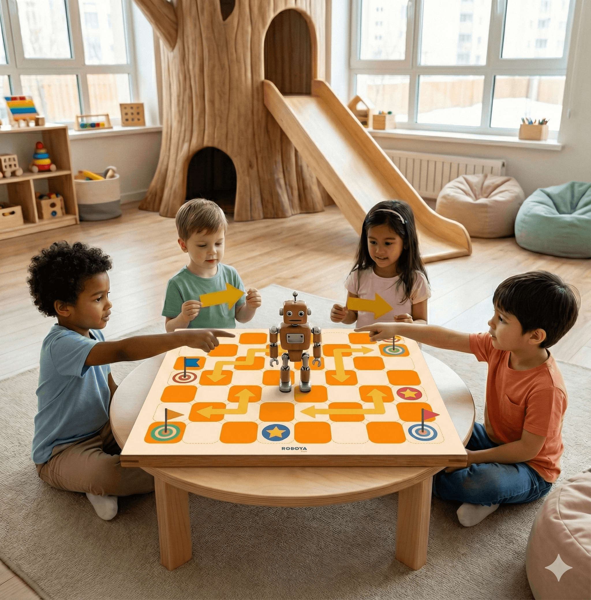 Bilgisayar yok, ekran yok, sadece oyun var! Renkli kutular ve kartlarla oynanan bu masa oyunu, çocukların algoritma mantığını en eğlenceli haliyle keşfetmesini sağlar. Bee-Bot gibi robotlara geçmeden önce harika bir zihin jimnastiğidir.